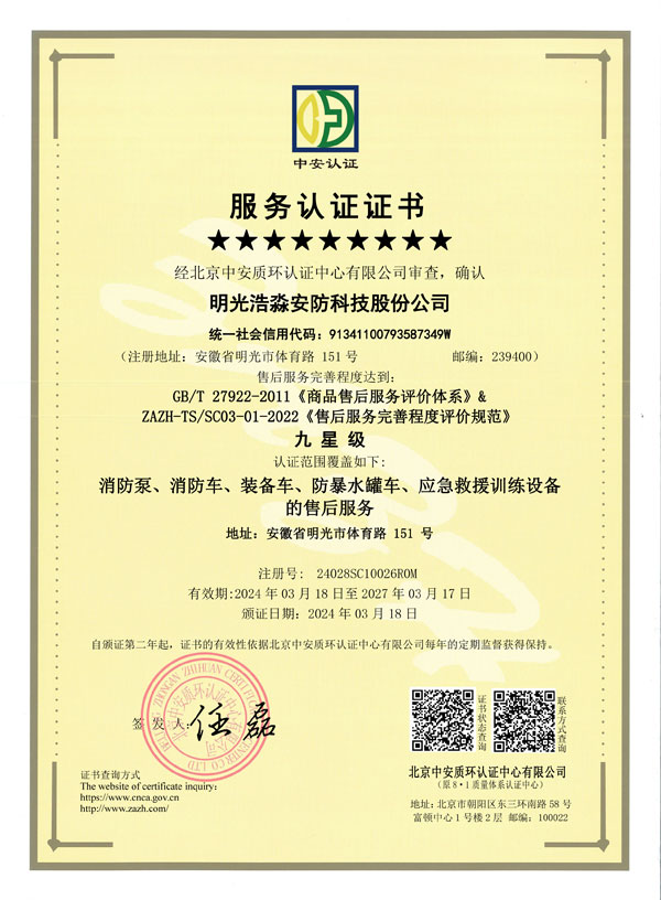 明光浩淼安防科技股份公司,主要從事各類消防車、警用特種車輛以及真火訓練設備的研發、設計、制造、銷售和服務。公司于2021年11月15日在北京證券交易所上市。(股票代碼:920856)。【詳細介紹】